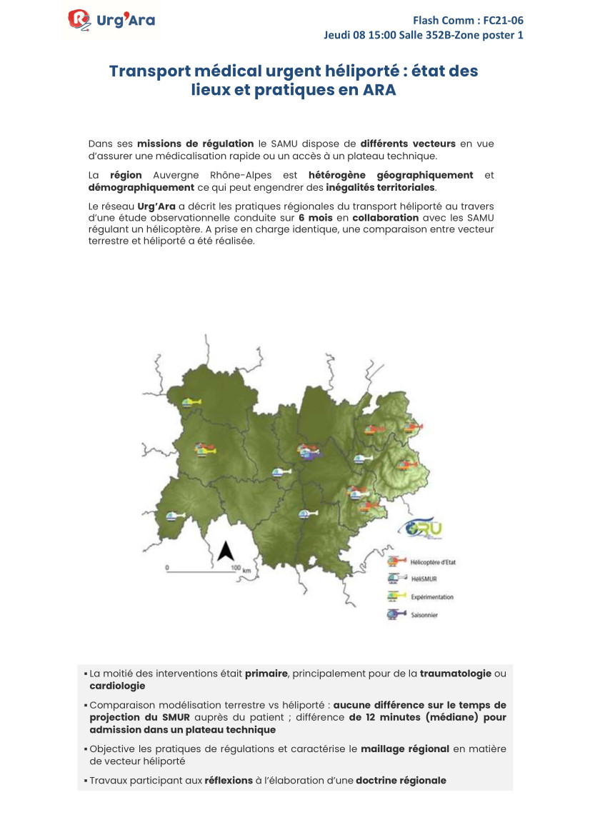 – Transport médical urgent héliporté : état des lieux et pratiques en ARA – J Freyssenge – Version commentée